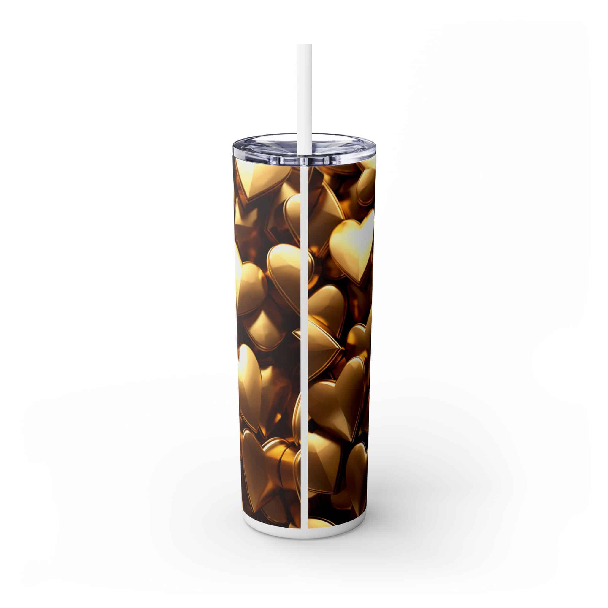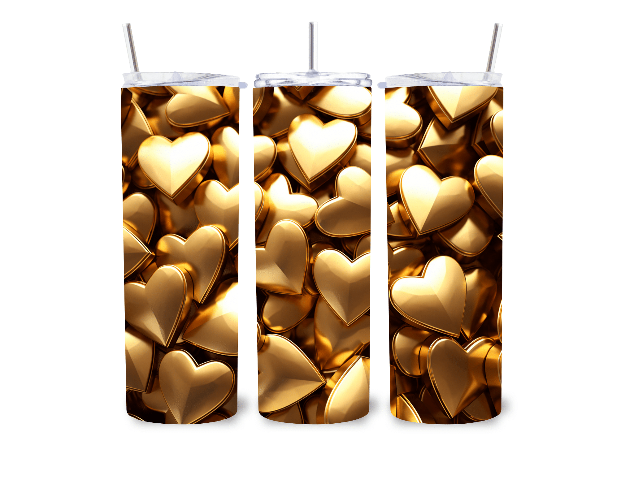 Durability Meets Style: 3D Gold Hearts 20oz Tumbler
