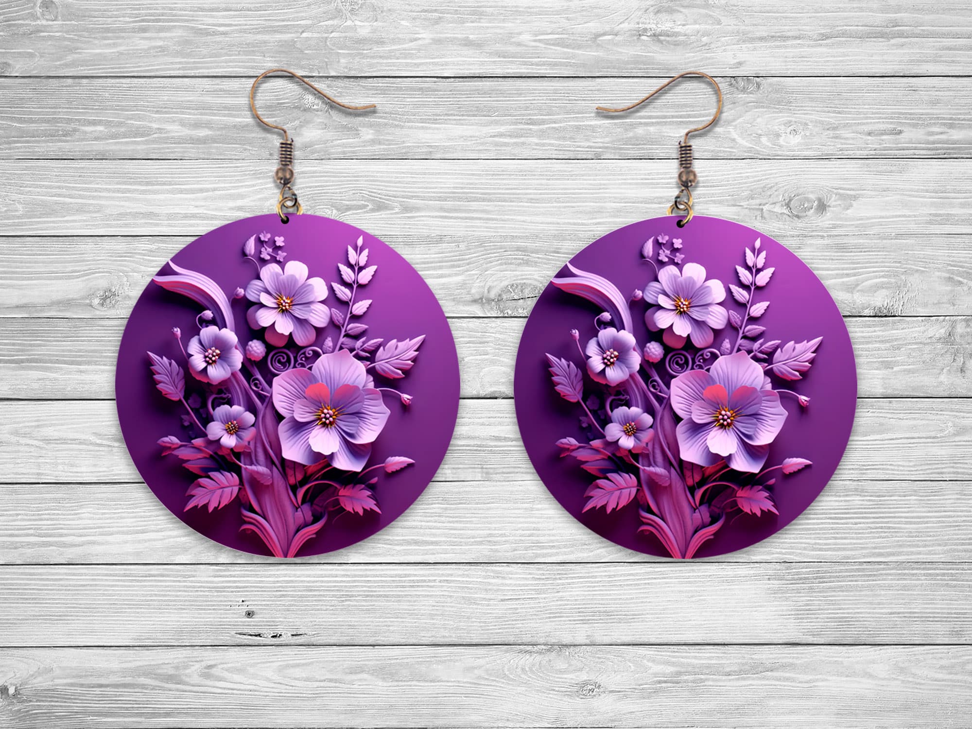 Indulge in the enchanting allure of floral jewelry with the 3D Purple Flowers Round Earrings #4. Their captivating design and vibrant colours make them a standout piece that elevates any ensemble.