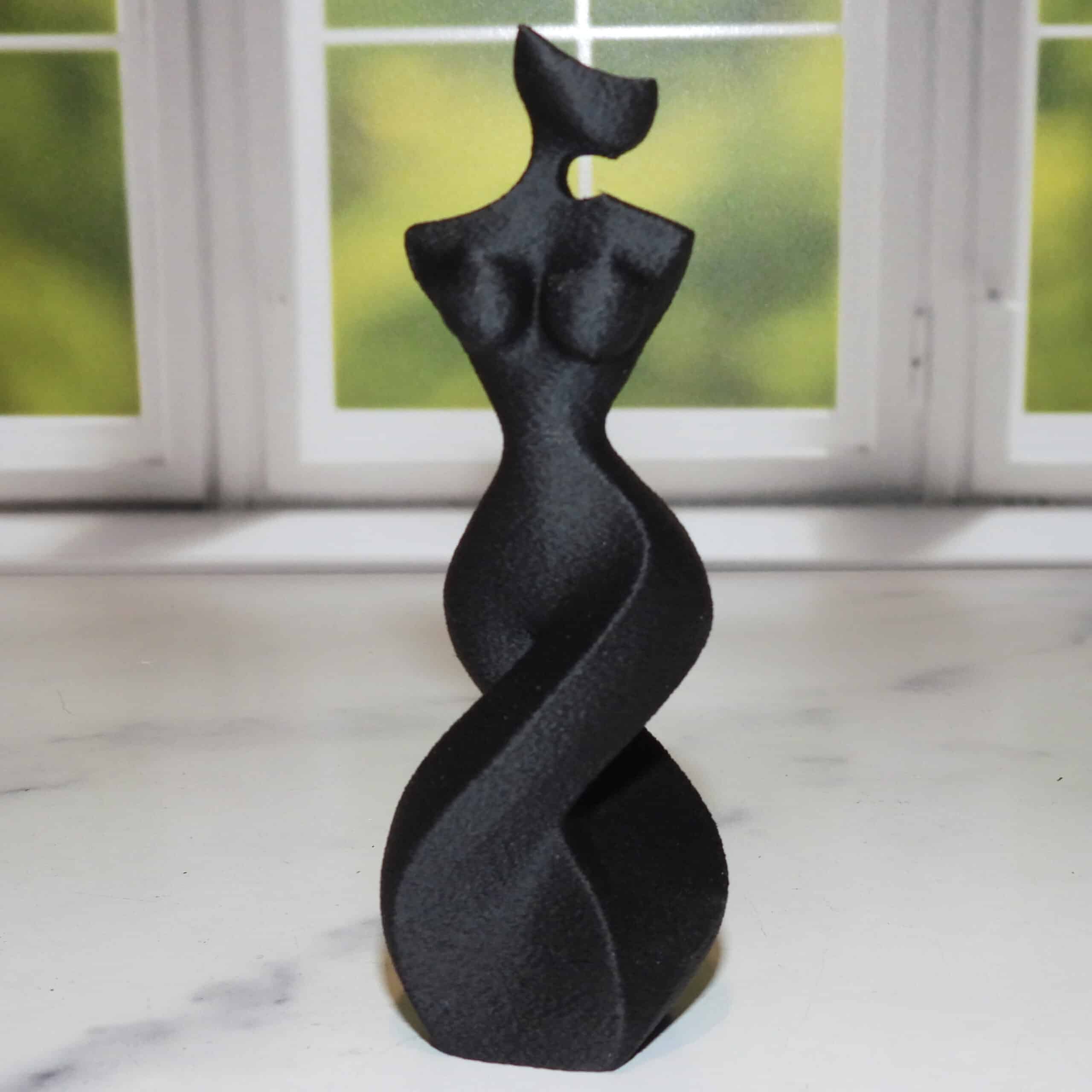 Constructed from durable matte PLA, the Abstract Woman Sculpture is designed to maintain its form and beauty over time. PLA is a biodegradable material derived from renewable resources, making it an environmentally friendly choice for art lovers. Its resilience ensures that the sculpture retains its pristine condition, even after years of display. The matte finish prevents glare, allowing the sculpture’s intricate details and contours to stand out without distraction.