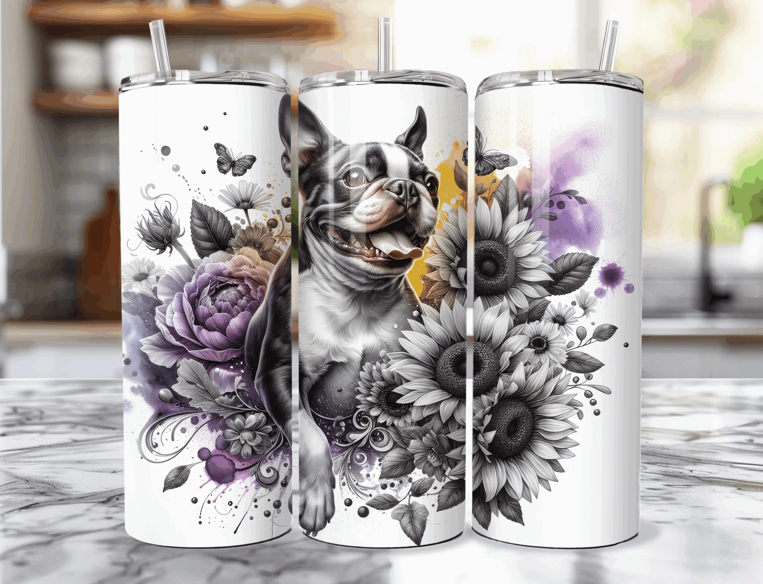 A Thoughtful Gift for Breed Lovers: Boston Terrier in Flowers 20oz Tumbler