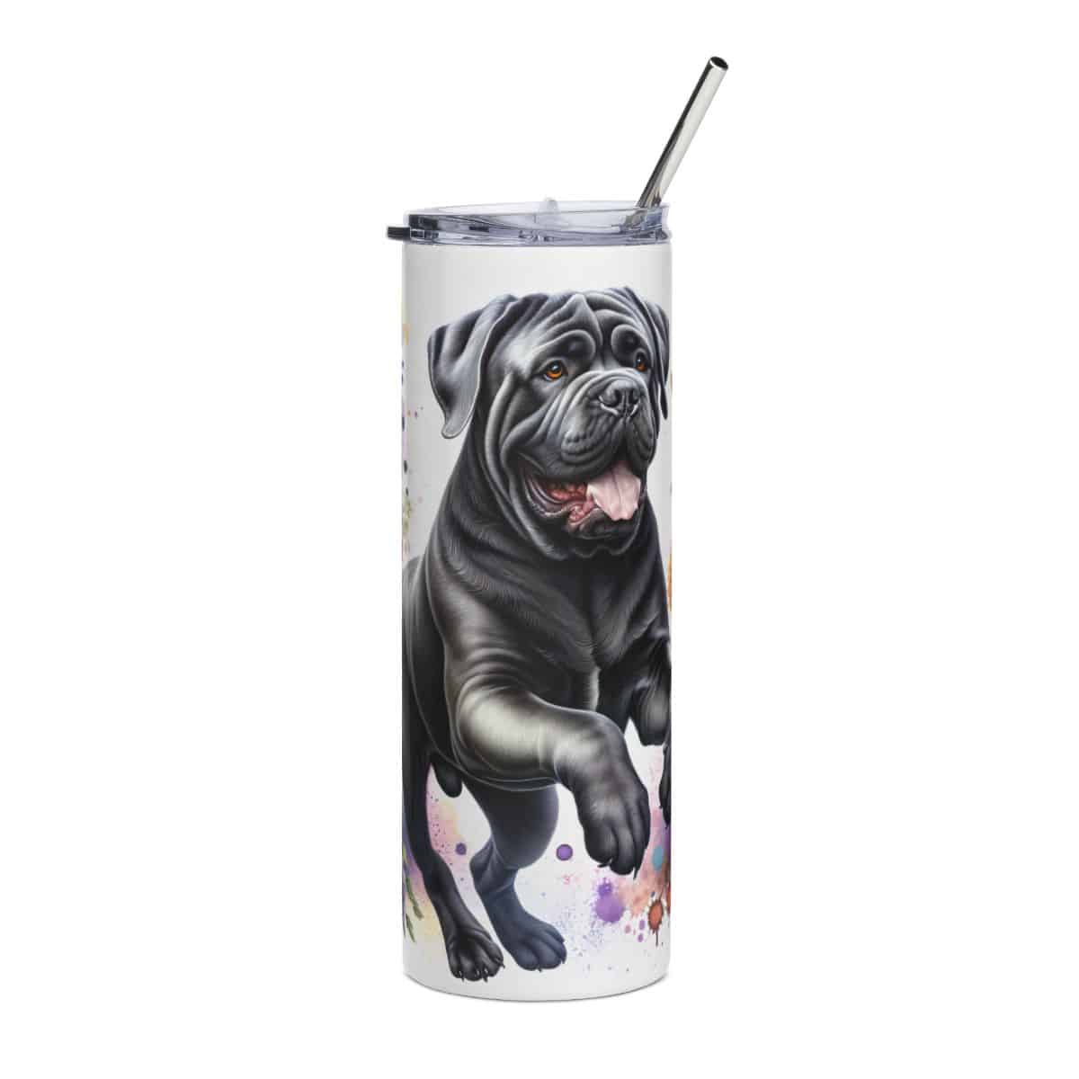 This tumbler pays tribute to the impressive stature and gentle heart that make the Bullmastiff a beloved companion for many. Furthermore, the design artfully blends the dog’s commanding presence with delicate blossoms, creating a balanced and visually captivating image. Therefore, it is an excellent choice for dog lovers who appreciate strength combined with grace.