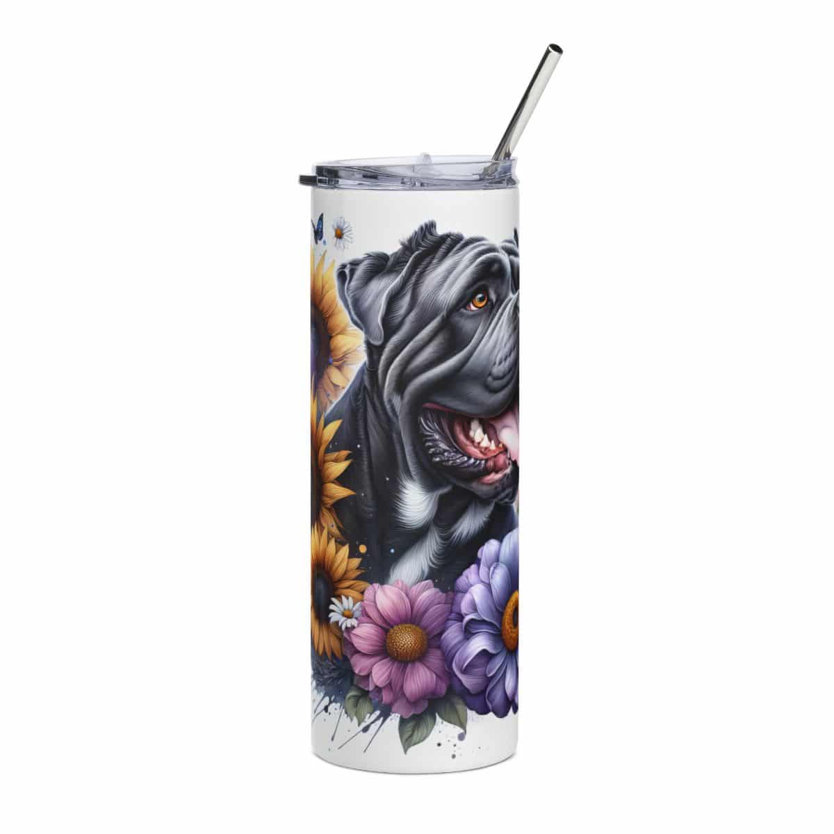 This 20oz tumbler highlights the Cane Corso’s powerful form with floral elements that soften and enhance its presence. The design balances protective strength and calm elegance with care. It features insulated stainless steel construction for lasting performance. A bold tribute to a loyal companion.