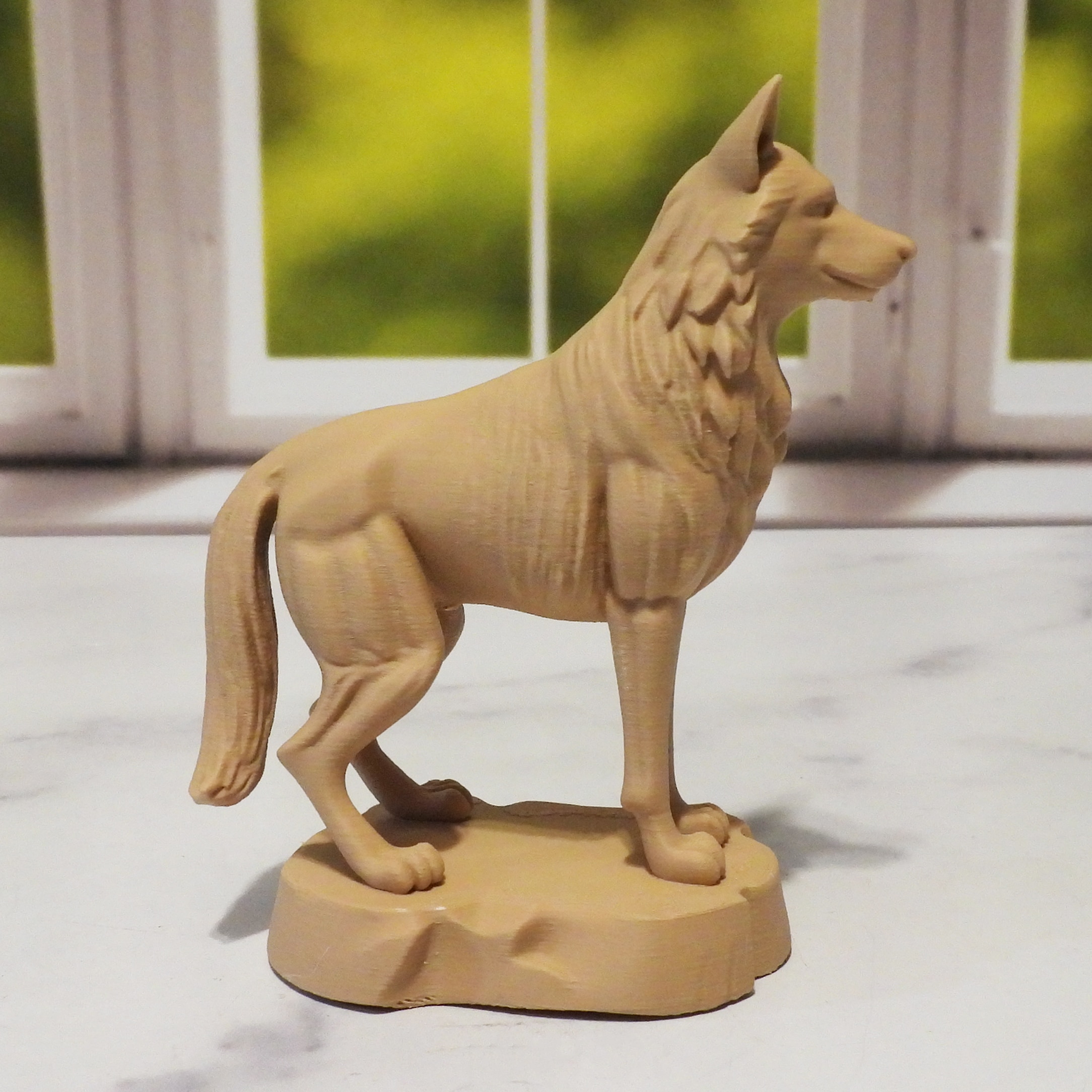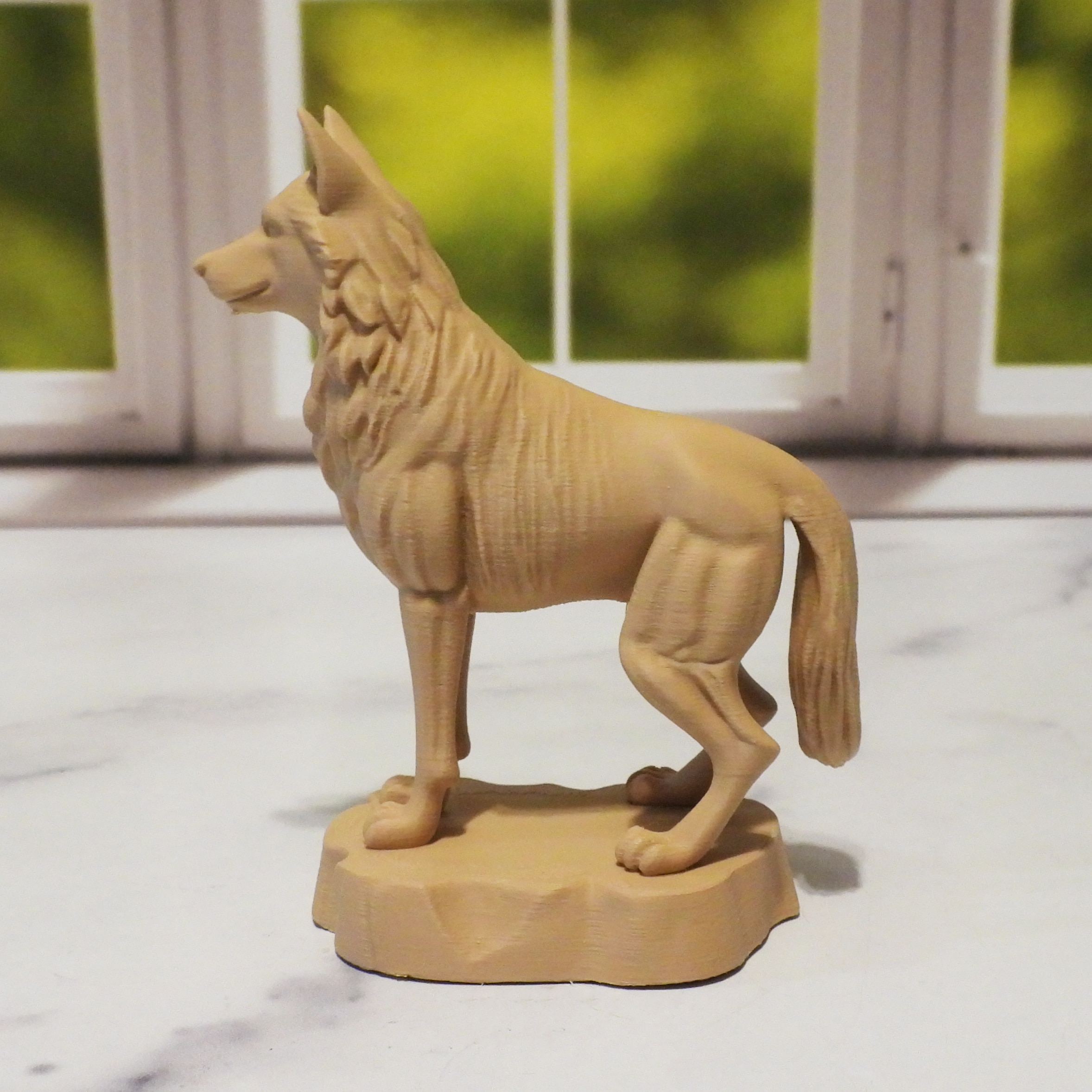 This piece may look carved from wood, but its matte PLA composition provides greater resilience and long-term durability. The material allows for clean detail, subtle layering, and a lightweight form that’s easy to handle. Designed with artistic care and symbolic strength, the Carved Wood-Style Wolf on Alert Sculpture adds depth and story to any space.