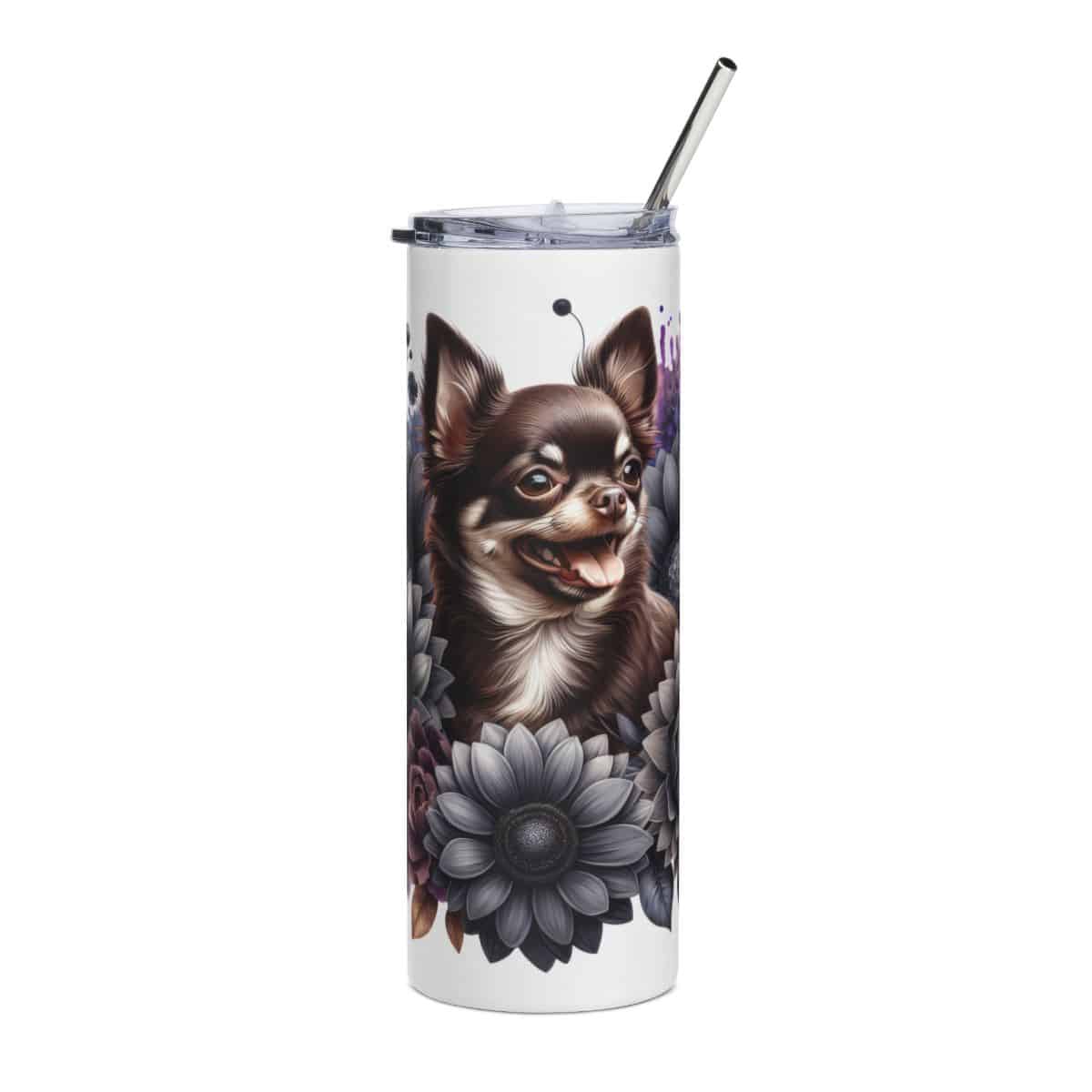 Few designs celebrate both canine personality and aesthetic beauty like this one. The Chocolate Chihuahua in Flowers 20oz Tumbler makes a lovely gift for dog lovers who appreciate flair and sentiment. It suits birthdays, holidays, or just-because surprises.