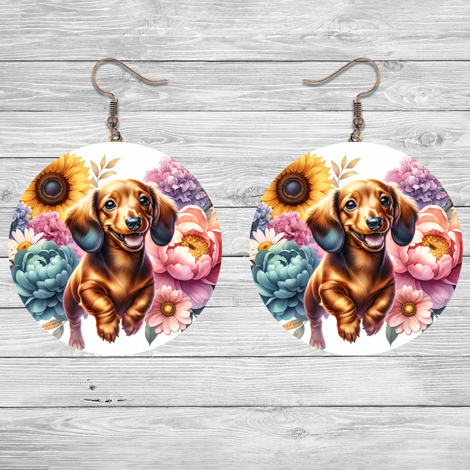 Unique Style Statement: Dachshund in Flowers Round Earrings