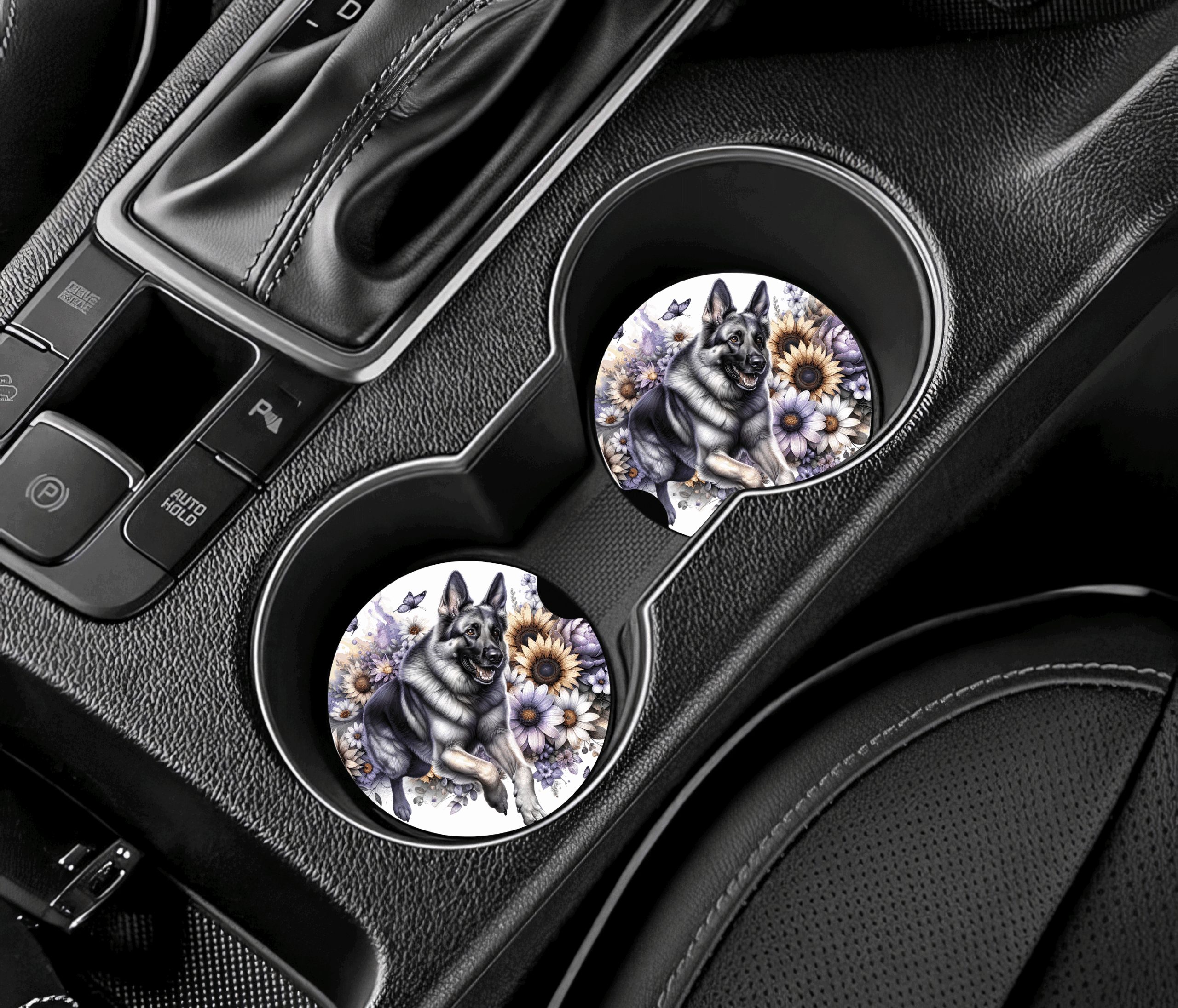 Choosing this coaster set means opting for quality, style, and a love for German Shepherds. The intricate floral designs and the noble image of the breed make these coasters a standout accessory for any vehicle. They are a testament to your appreciation for beauty and functionality.