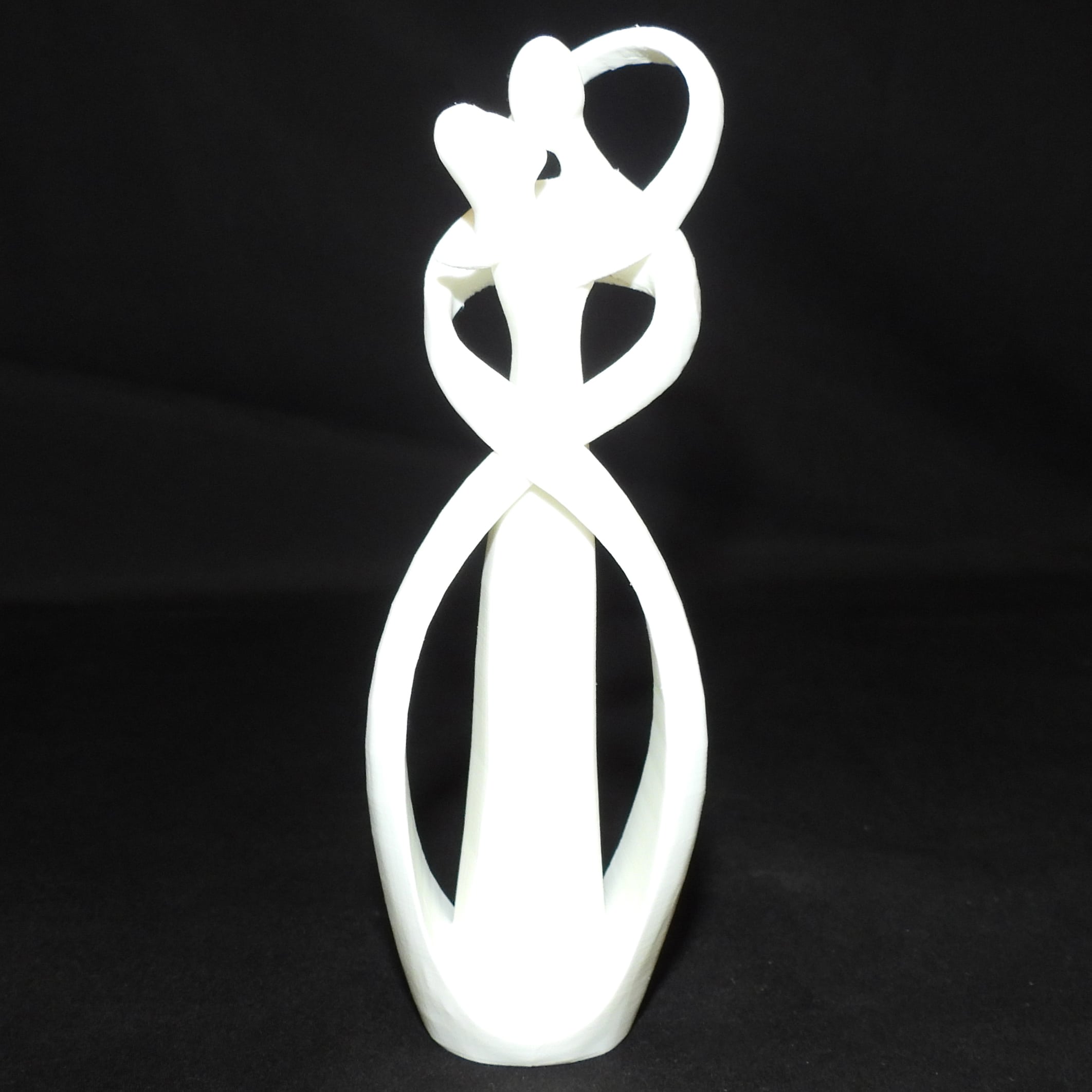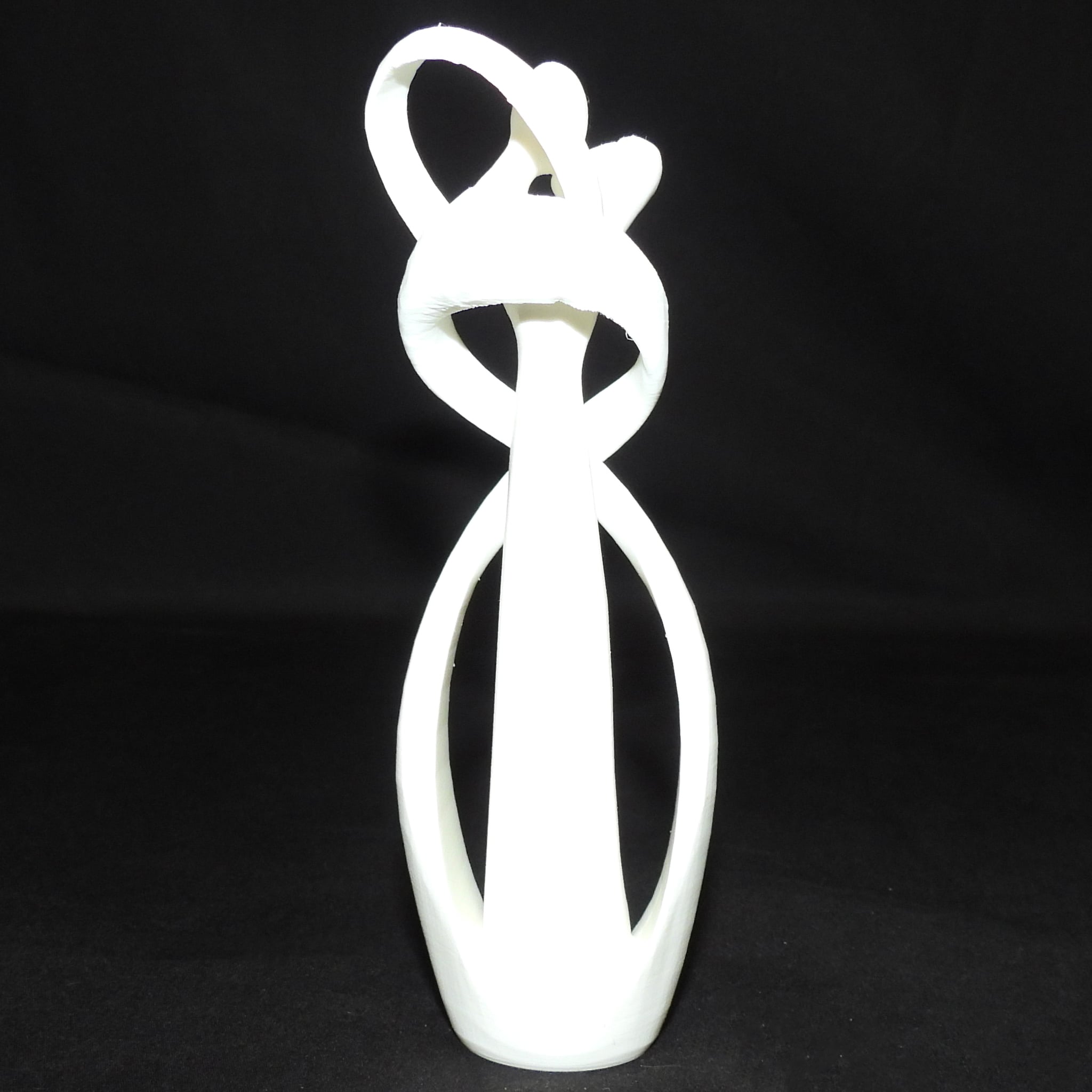 This sculpture is 3D printed from matte PLA, a material chosen for its ability to create soft edges and fine detail. As a result, the finish is smooth and non-reflective, giving it an almost stone-like appearance. Furthermore, it subtly diffuses light across the curves, enhancing the sculpture’s graceful presence.