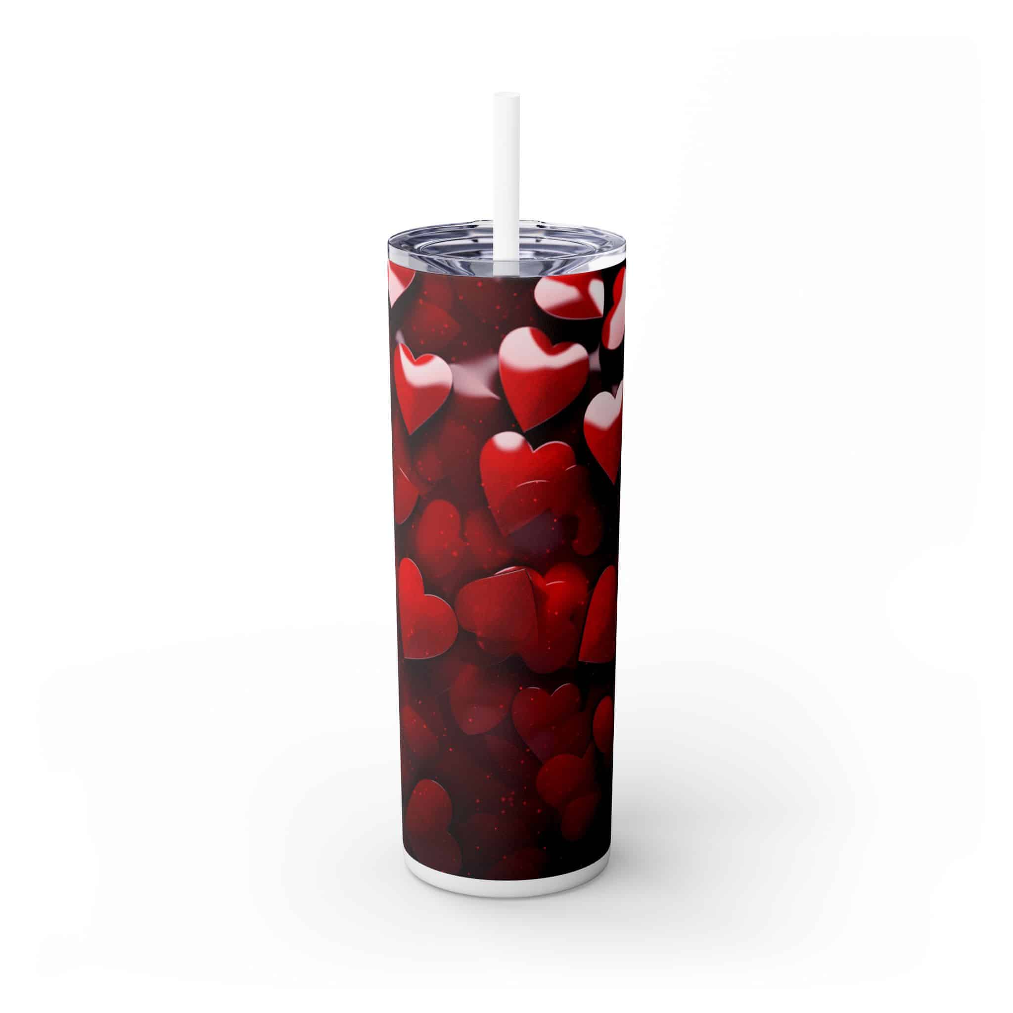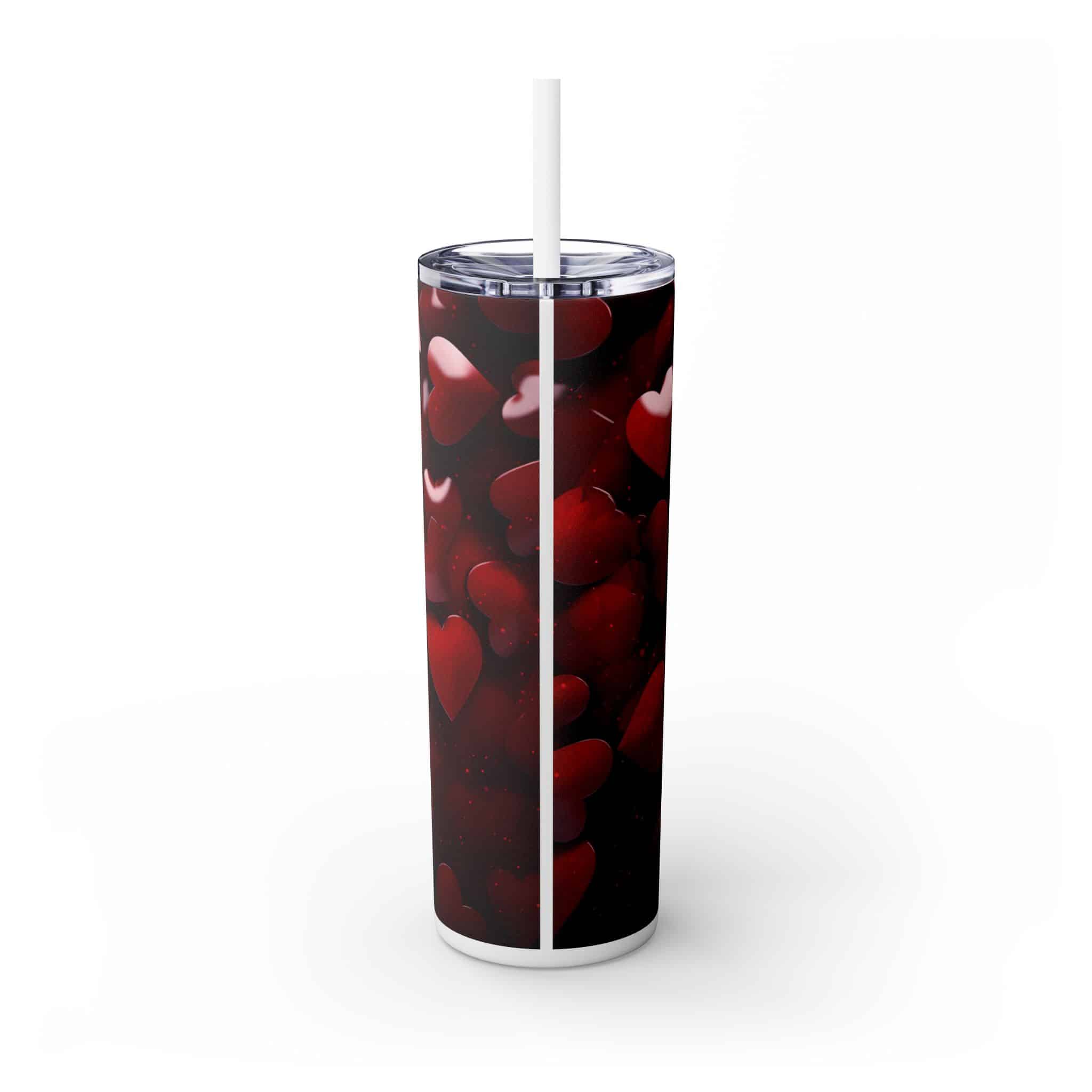 Crafted with high-quality materials, this tumbler ensures durability and longevity. Its double-wall insulation keeps your drinks at the perfect temperature, making it ideal for both hot and cold beverages. The vibrant red hearts against the red background create a visually appealing look that stands out in any setting.