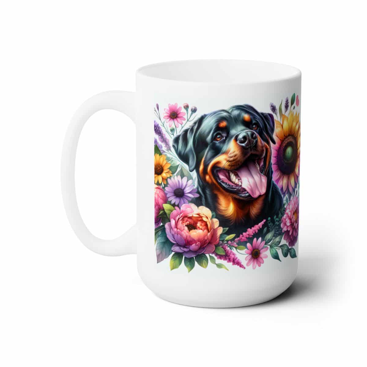 Made for Daily Use and Display: Rottweiler in Flowers 15oz Mug
